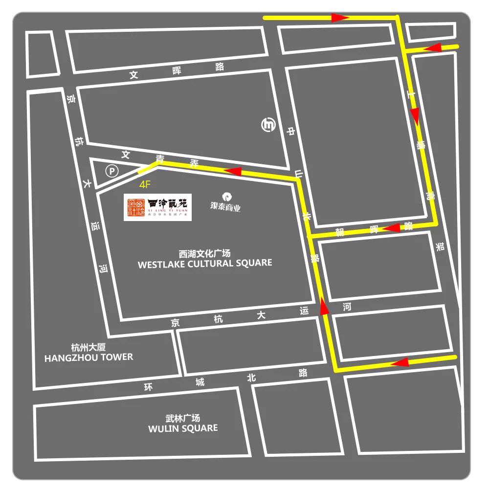 驾车/出租车:杭州市拱墅区西湖文化广场32号(停车便捷)。
