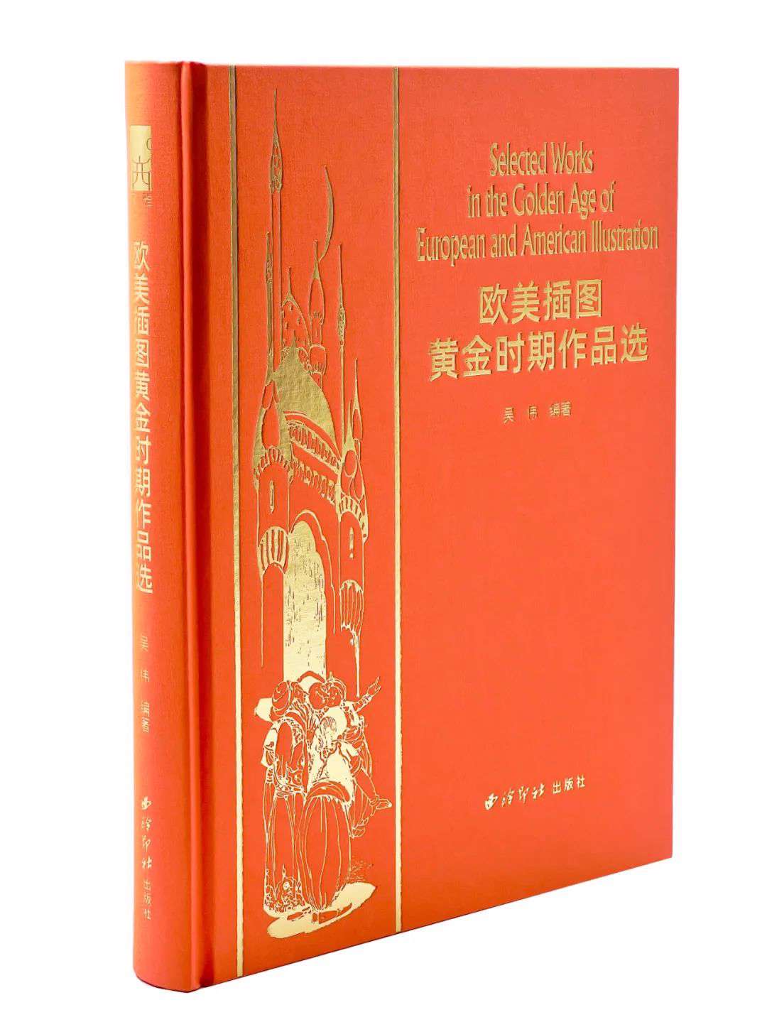 橙色布面精装,封面封底大面积烫金