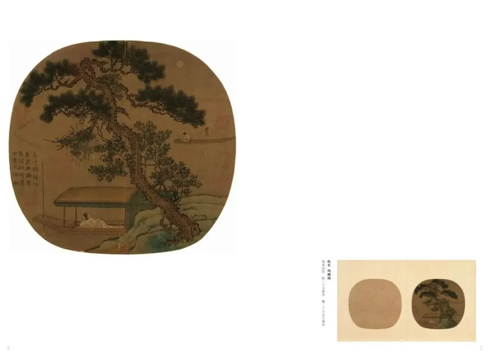 本次出版的《宋元纨扇画册两种》为《石渠宝笈》中著录的两种《宋元纨扇画册》合集。纨扇又称宫扇、团扇、罗扇,它出现于羽扇之后、折扇以前。西汉成帝的妃嫔班婕妤写过一首有名的《怨歌行》:“新制齐纨素,皎洁如霜雪。裁为合欢扇,团团似明月。出入君怀袖,动摇微风发。常恐秋节至,凉飙夺炎热。弃捐箧笥中,恩情中道绝。”这里的“合欢扇”指的就是纨扇。虽然宋代的大部分小品画在其诞生之初是为了某些装饰性用途,但其艺术价值却远非简单的装饰图画所能概括。这是因为传世的大量宋人小品绝大多数都来自宫廷,其作者也多是宫廷画院的画师。他们在创作这些供御画作时皆用心绘制不敢有丝毫怠慢。与此同时,上至王公贵胄,下至普通文人,更是乐于在团扇上题诗作画相互馈赠,这也使得小品画的创作蔚然成风。