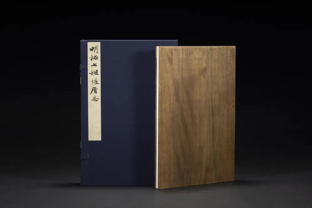 《明拓七姬权厝志》封面采用金丝楠木面板,还原文物本来面貌。书中藏书票,以手工木板水印而成,用纸为1997年红星老宣纸。