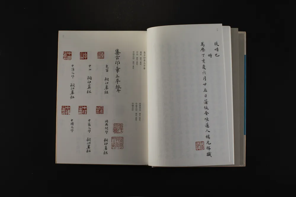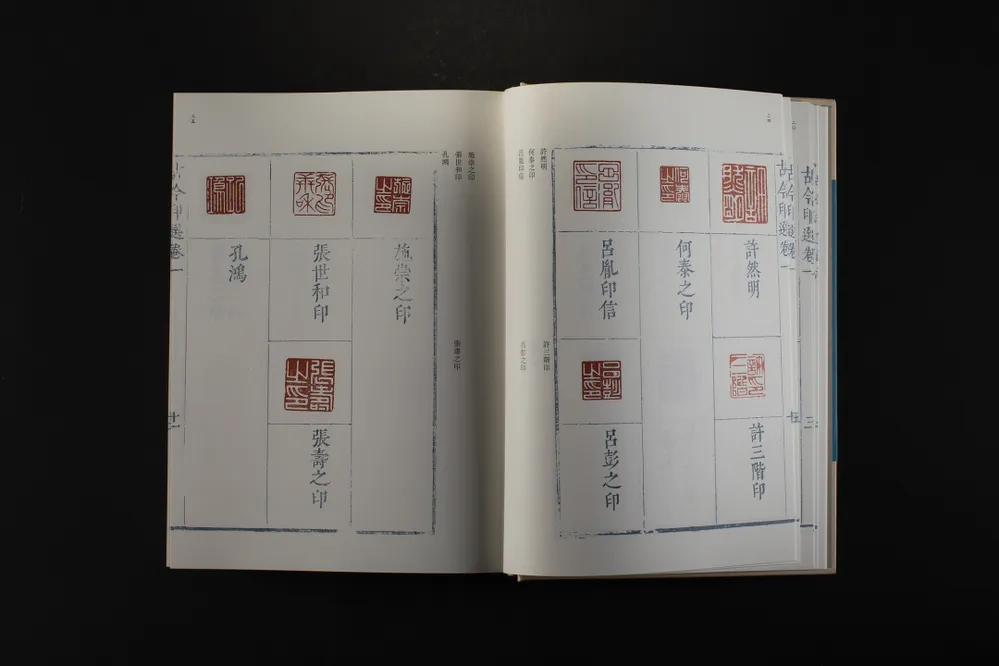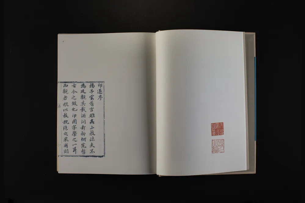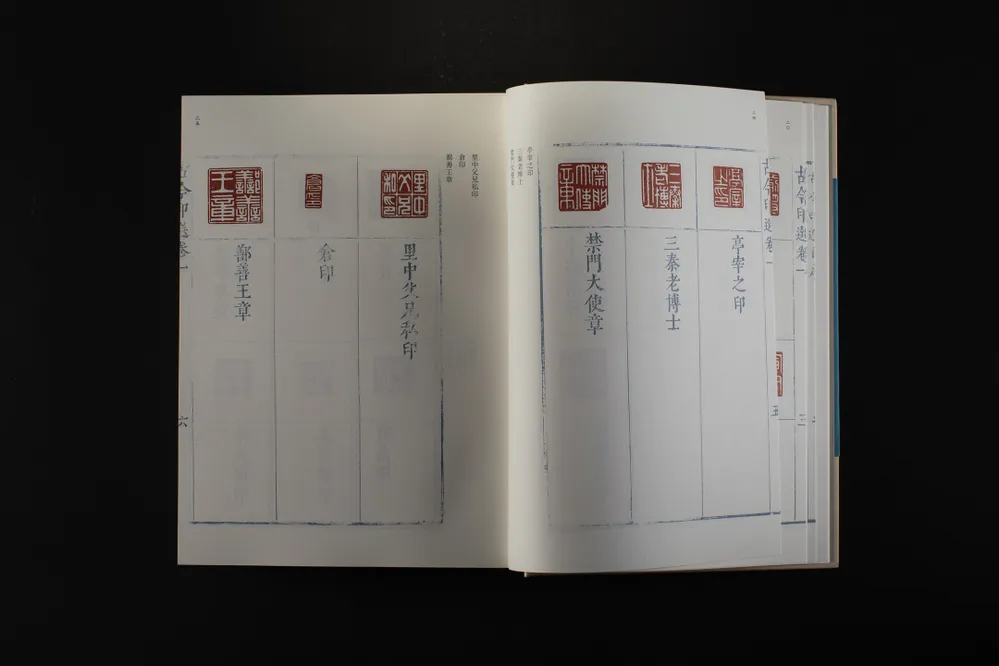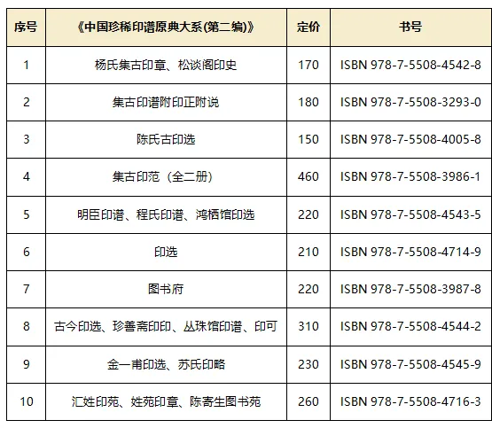 《中国珍稀印谱原典大系》由陈振濂先生主编,拟分三编出版。其中第一编为“十三五”国家重点出版物规划项目和2019年度国家出版基金资助项目,已全部出版,共收录印谱48种,合计321册,均为线装影印本。第二编为“十四五”国家重点出版物规划项目和2024年度国家出版基金资助项目,为精装整理本,收录印谱120种,装订为120册。第二编以印谱面世的时间为序,将古玺印和流派印混合编排。除了与第一编一样,每种印谱各系“题解”外,还对原印谱进行全面整理,对印面、边款进行释文,对序跋、考证和注解文字等进行标点。上述整理文字除序跋外,均与原谱置于同一页,对原谱的版式不作改动;序跋置于该谱末尾。此次上市的第二编19种印谱,共使用10个标准书号,装订为11册。