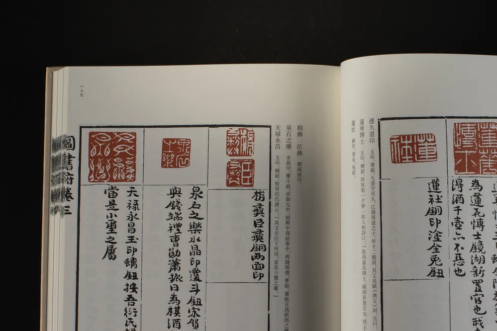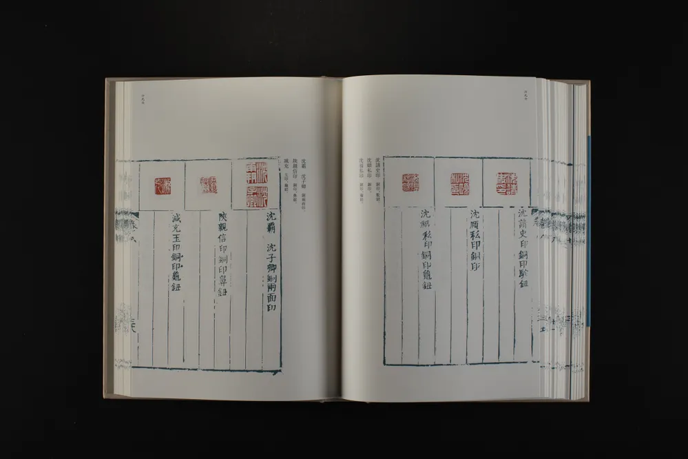 《松谈阁印史》,明万历四十三年(1615)郭宗昌辑。底本藏于西泠印社。郭宗昌,字胤伯、允伯,号涉园、委宛山人,陕西华州(今属渭南)人。博雅好古,尤好搜集古玺印章,所得颇为可观。《松谈阁印史》为原钤本,分五卷,第一、二卷为官印,第三、四卷为私印,第五卷为象形印、阙疑印。印下有楷书释文,部分系考释文字。全谱收印约900方。