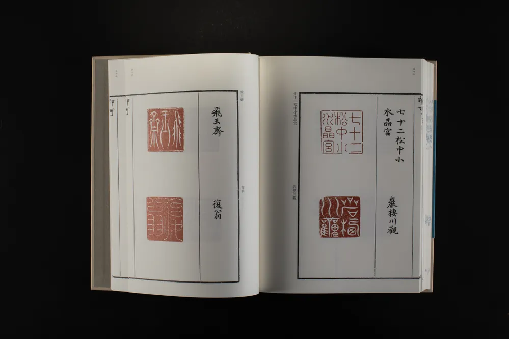 《珍善斋印印》,吴迥篆,成谱于明万历年间,底本藏于西泠印社。吴迥,字亦步,安徽歙县人,精通六书,善书法篆刻。是谱共四卷,有董其昌、黄汝亨等序,所收多为成语、斋馆、诗句、姓名印,每印下附释文。全谱收印500余方。